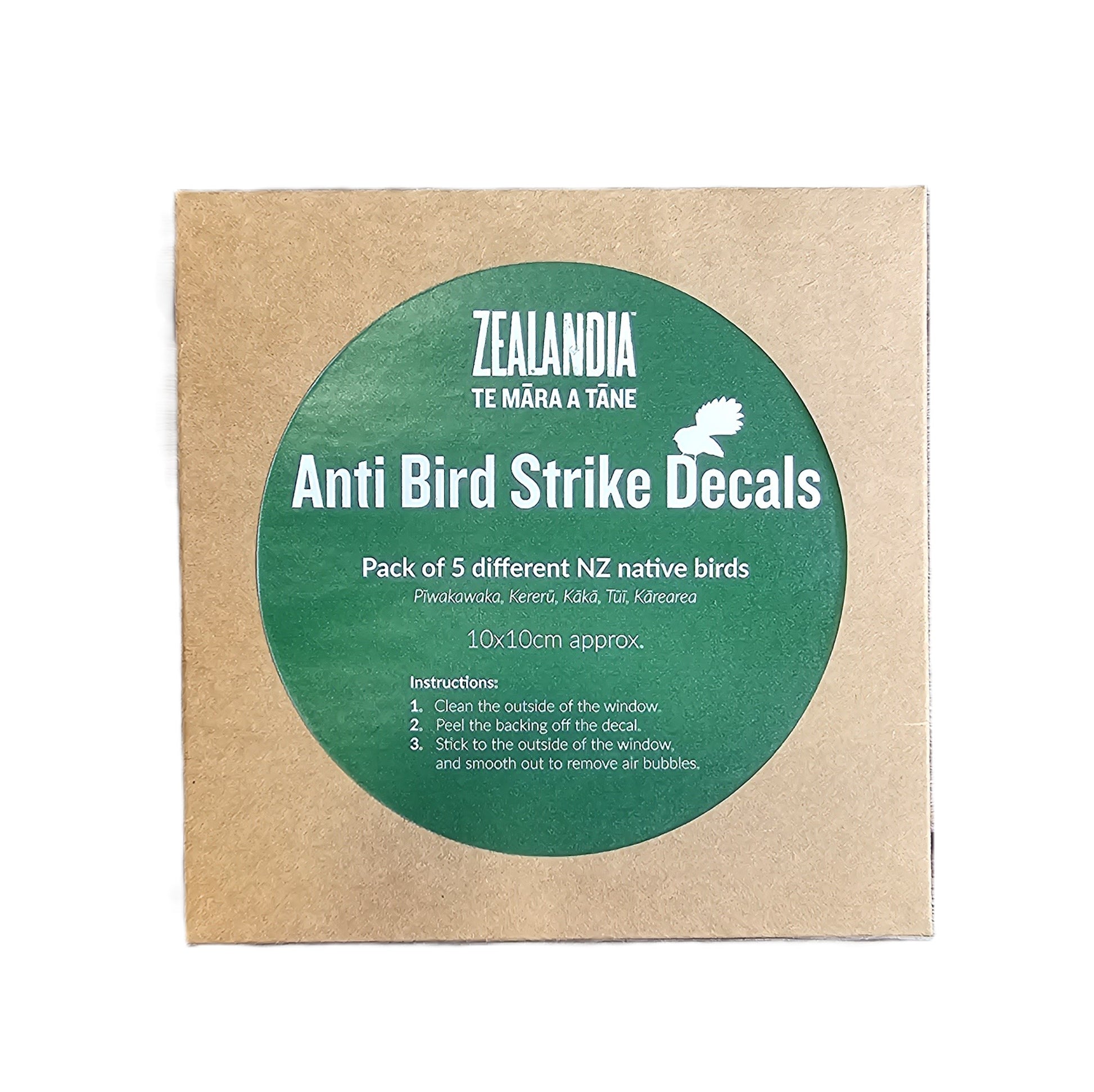 Protect our native manu with these Anti Bird Strike Decals! The decals work by disrupting the UV reflection of the glass, helping birds to see there's a barrier and avoid it. Featuring silhouettes of five of Zealandia's favourite species (the ones that can fly): Pīwakawaka, Kererū, Tūī, Kākā, and Kārearea.