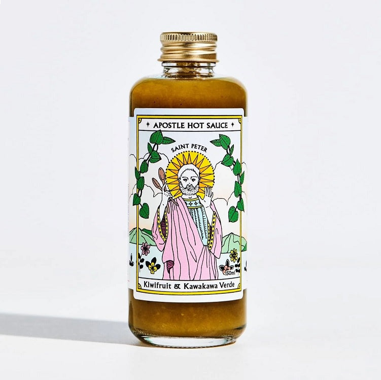 Apostle Hot Sauce is the creation of Lydia and Mat, from Paekākāriki, Wellington. They have a passion for local ingredients and refuse to use any artificial colours, preservatives, flavours or thickeners. Instead, they rely on fresh ingredients to create their vibrant range of sauces. They even use Kawakawa leaves picked from our own garden!