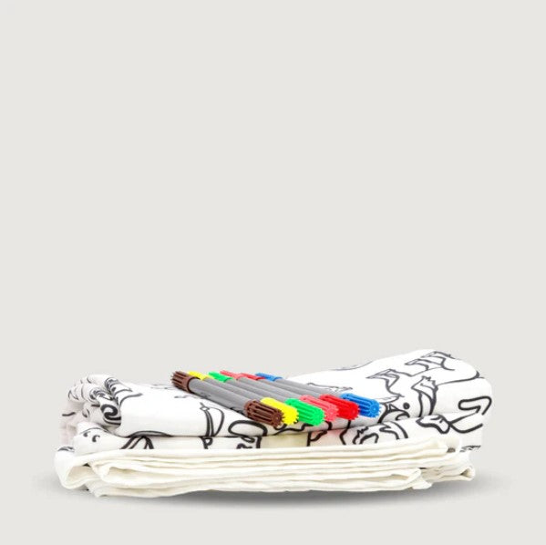 Let your tamariki express their creativity without sacrificing the dining room table with this Colour-In Tablecloth. Kids will love solving mazes and word finds, playing noughts and crosses, and colouring in their favourite native birds with the included felt pen set. And when everything has been coloured in, give it a wash and go again!