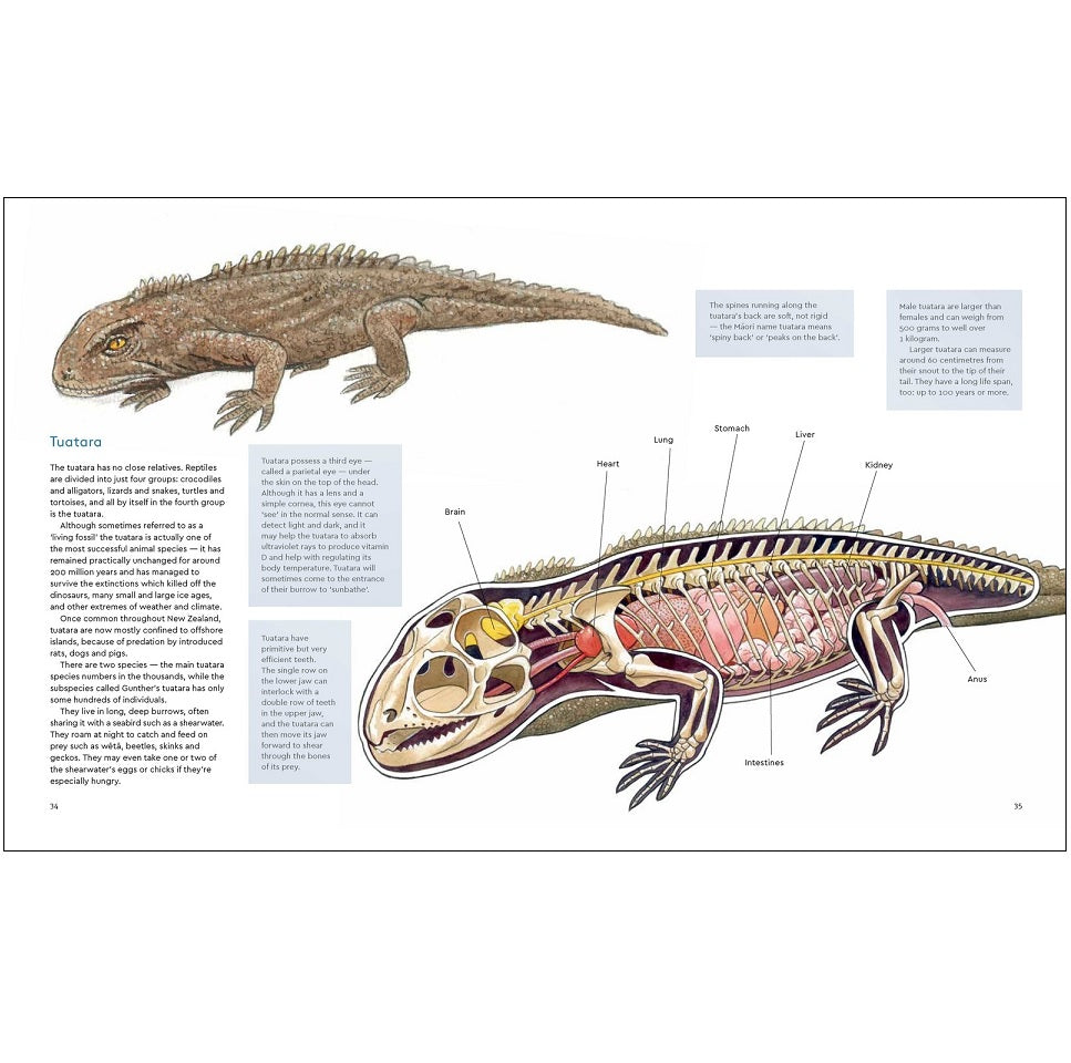 Most New Zealanders will easily recognise and identify our unique wildlife - whether it's a tree weta, a tuatara or a kiwi. We know quite a lot about them - how and where they live, what they do, what they eat and so on. But what makes them tick? What does an insect's eye actually see? Does an earthworm have 'guts'? Does the flightless kiwi have any wings under all those feathers? Author and illustrator Dave Gunson delves deep inside some of our best-known species to see what's really going on in there, and to find out just how our native creatures work!