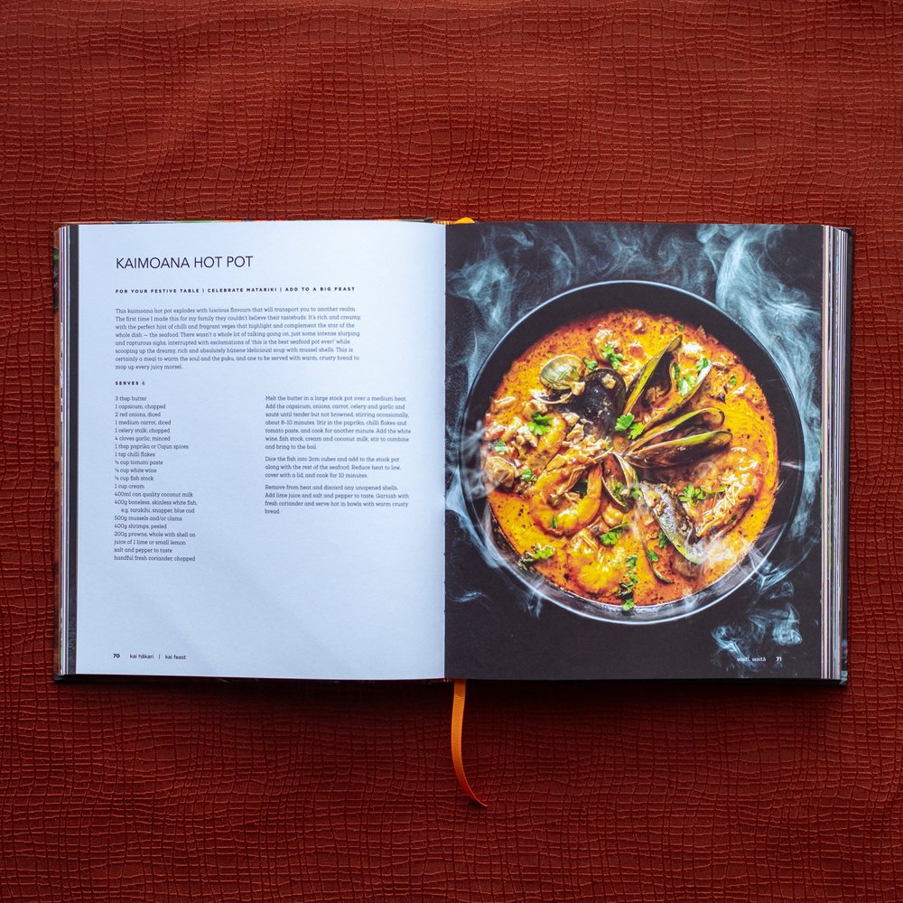 In this beautifully illustrated story of feasting you’ll find a bountiful basket of kai and kōrero gathered all the way from the mountains to the sea. It’s lip-smackingly good kai – from soul-warming kaimoana hot pot, umu pulled pork and hāngī infused with native rongoā, to kūmara donuts and burnt sugar steamed pudding. Recipes are woven with stories of traditional gathering and feasting, tips on cooking for a crowd and notes on foraging and using native herbs. With Kai Feast in your kitchen, you’ll be prepared for any occasion, big or small. It’s time for kai. It’s time to feast.