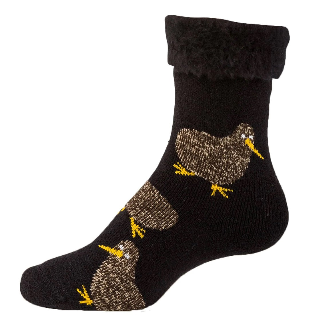 Take a kiwi to bed, on your feet. These wonderfully soft and cosy bed socks feature New Zealand icon, the Kiwi. The socks feature a brushed inner to keep your feet warm.