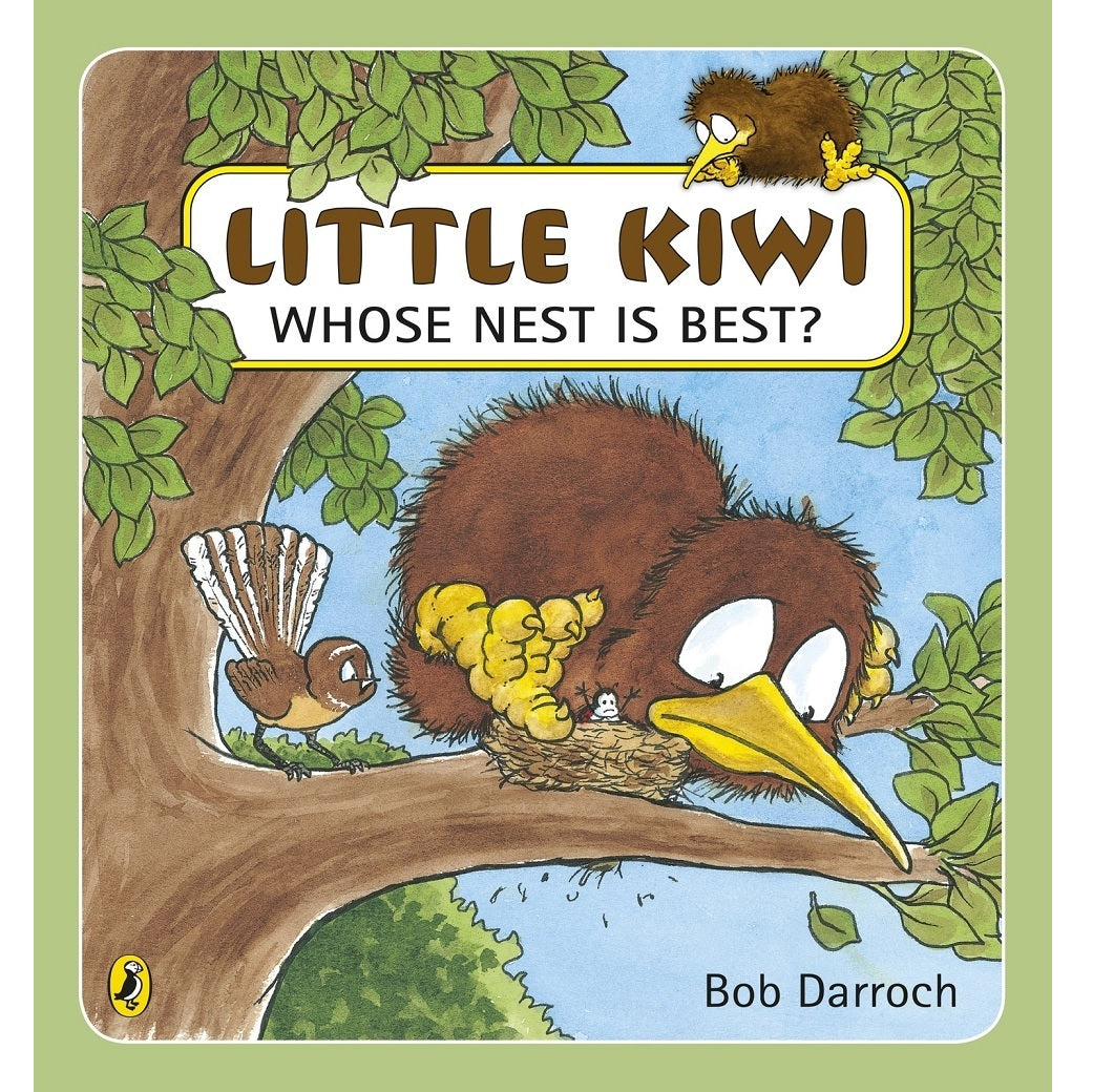 Little Kiwi can't sleep - Little Sister keeps kicking and Dad is snoring! Little Kiwi is SO tired. Where can he find a quiet place to sleep? Little Kiwi decides to find himself a better nest. It's too lonesome by himself so Little Kiwi joins Kaka - but the Kaka chicks are far too noisy. The Keas' mountain nest is too cold, Morepork's is too high, Blue Duck's is too damp and Little Kiwi can't even squeeze into Fantail's tiny nest. Will Little Kiwi ever find the perfect place to rest? Little Kiwi Whose Nest Is Best? is a delightful bedtime adventure in Bob Darroch's bestselling Little Kiwi series.