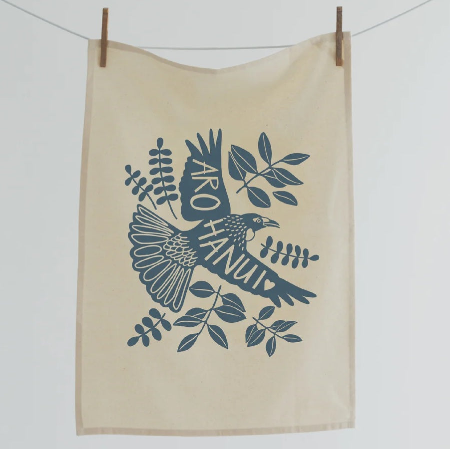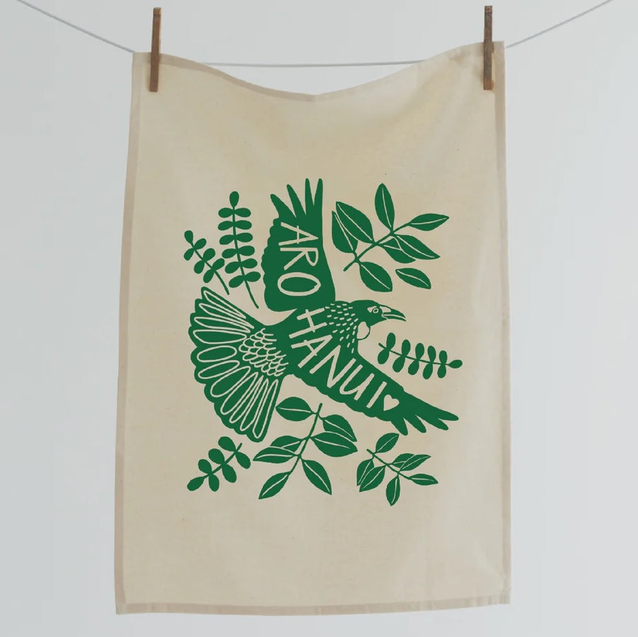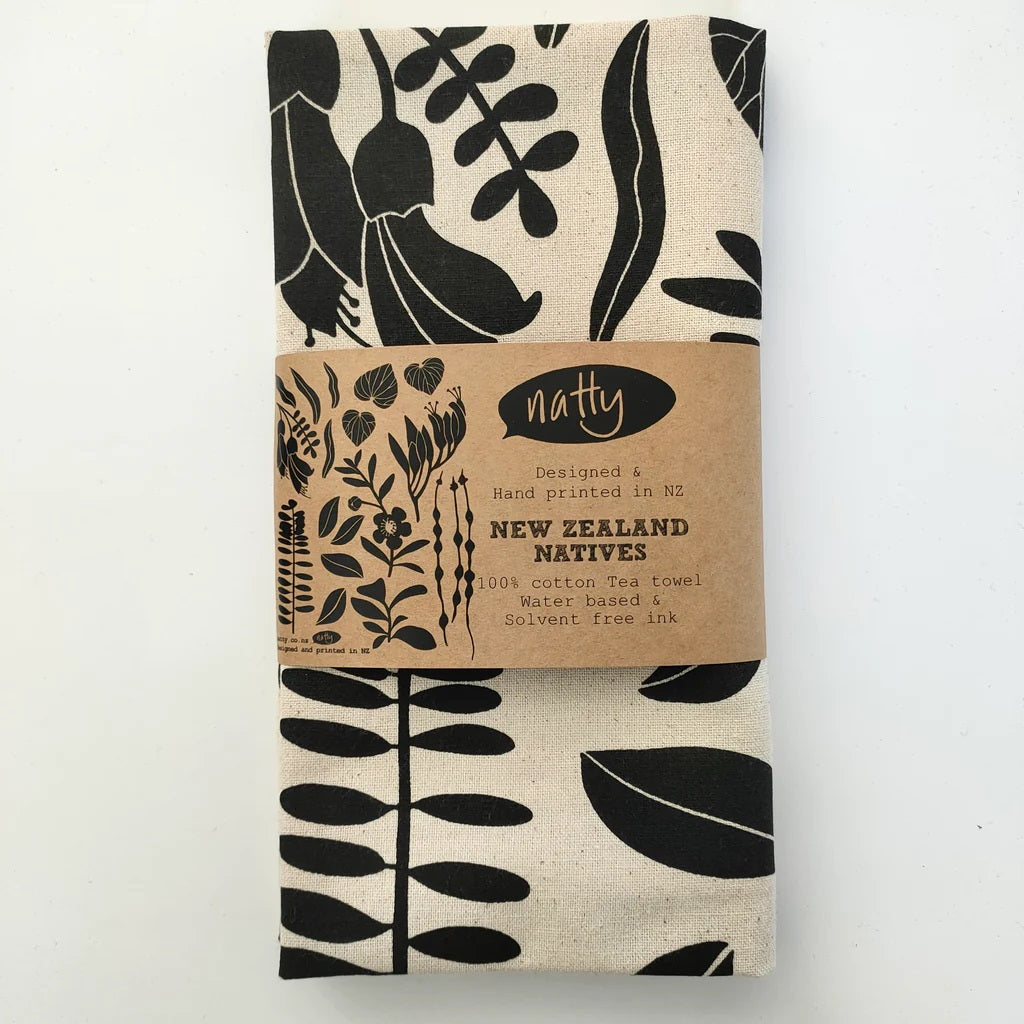 These 100% natural (unbleached) ethically sourced cotton tea towels are hand screen printed with designs by Wellington local artist, Natty.