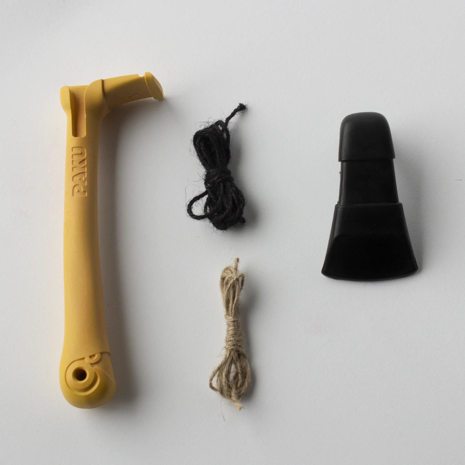 The Paku Toki comes with a handle and blade both made from high quality, post-industrial, recycled nylon, plus lashing in both natural and pango jute twine.