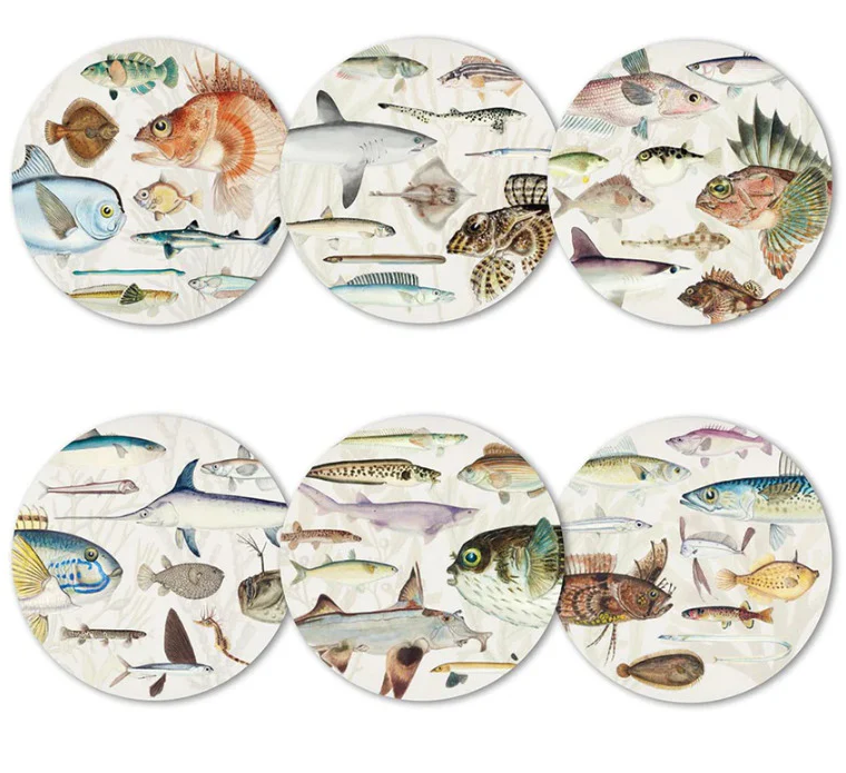 An interesting and beautiful boxed set of 6 Fishes of New Zealand of placemats. Each placemat is different. Check out the matching coasters.