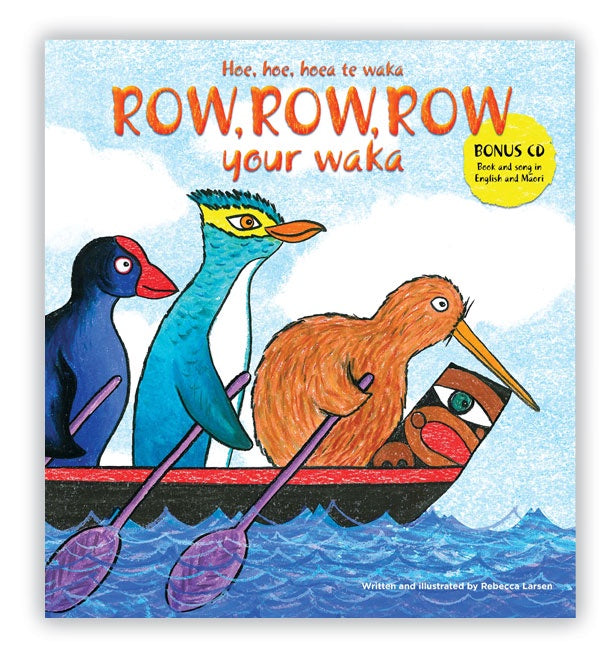 Row, Row, Row your Waka tells the story of New Zealand friends Pukeko, Hoiho and Kiwi as they go on a journey. Join them in their waka, perform actions and sing along to the bonus CD while you row, row, row. Tamariki love the actions in this book especially the squeal, pukana and haka.