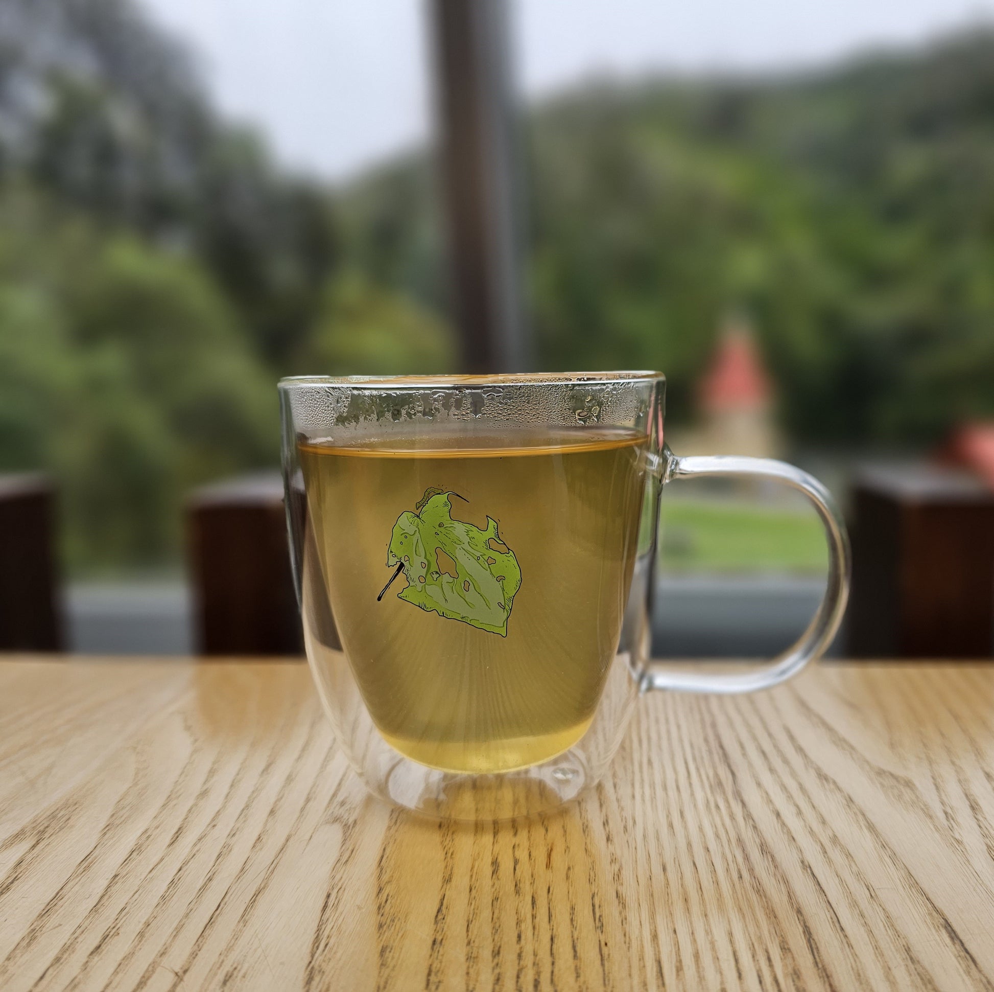 Featuring the iconic holey leaf of New Zealand's unique Kawakawa plant (and the cute little kawakawa looper catepillar responsible for the holes), this 310ml double-walled glass mug will brighten up even the dreariest of winter days.
